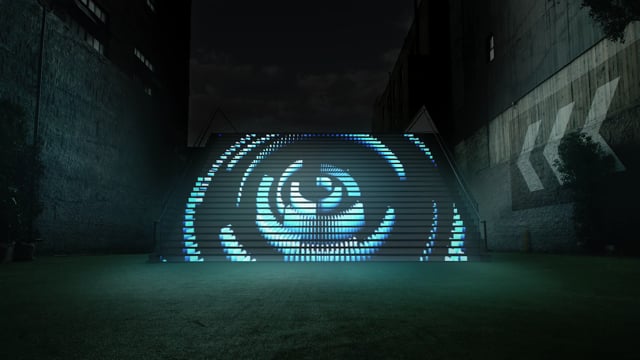A total of 1.5 million individual LED lights. Converted the structure into a massive LED wall. We integrated an interactive layer for the LEDs, inviting attendees to create, personalize and submit their very own piece of generative art directly from their mobile phones in real time.